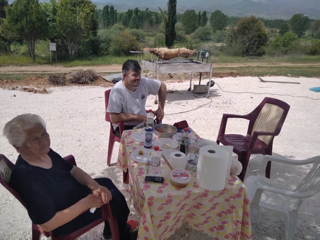Κάτοικοι από το Δαμάσι και το Μεσοχώρι βγήκαν από τα κοντέινερ και έστησαν ψησταριές για να τηρήσουν κάτω από αντίξοες συνθήκες το πασχαλινό έθιμο