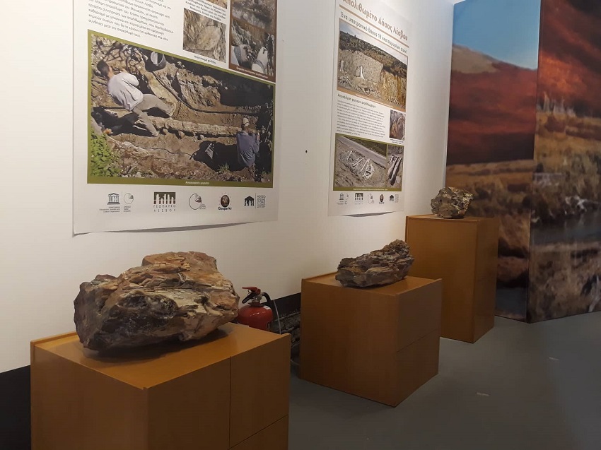 Μέσα σε αυτήν οι επισκέπτες μπορούν να δουν ένα προπλασμα από το Δεινοθήριο της Λέσβου με κίνηση και ήχο.