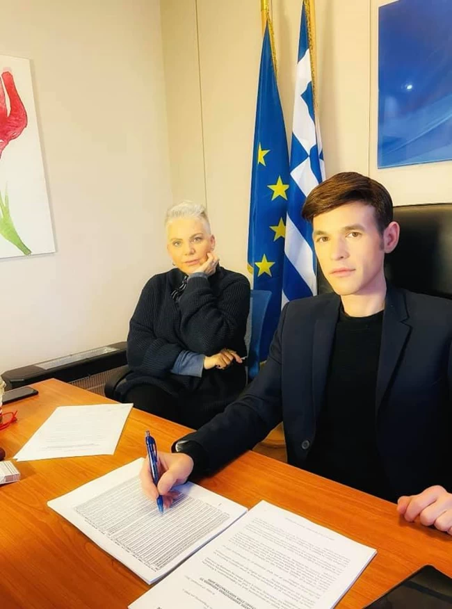 Ο παρουσιαστής ανήρτησε και φωτογραφίες στον λογαριασμό του στο facebook, όπου ποζάρει στο πολιτκό του γραφείο και... κάνει πως υπογράφει κάποια χαρτιά.