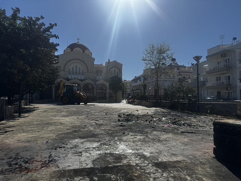 Από τις 06:00 το πρωί της Κυριακής του Πάσχα, τα συνεργεία της Υπηρεσίας Καθαριότητας προχώρησαν με μηχανήματα έργου σε εκτεταμένες επιχειρήσεις καθαρισμού, απομακρύνοντας υπολείμματα από φωτιές που άναψαν το βράδυ της Ανάστασης σε δρόμους και πλατείες έξω από Ναούς του Ηρακλείου.